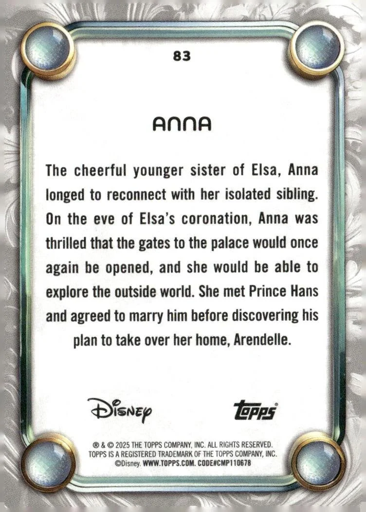 This is a nice example of a 2025 Topps Disney Wonder #83 Anna
