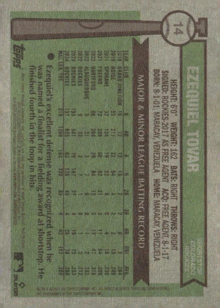 This is a nice example of a 2025 Topps Heritage #14 Ezequiel Tovar