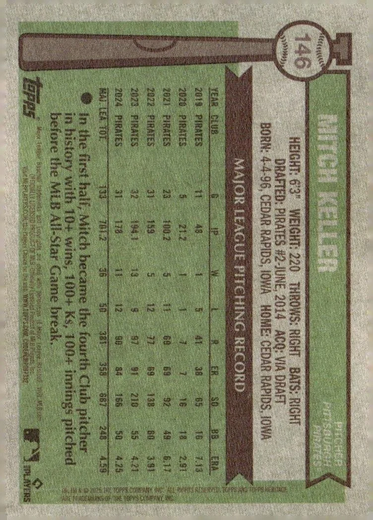 This is a nice example of a 2025 Topps Heritage #146 Mitch Keller