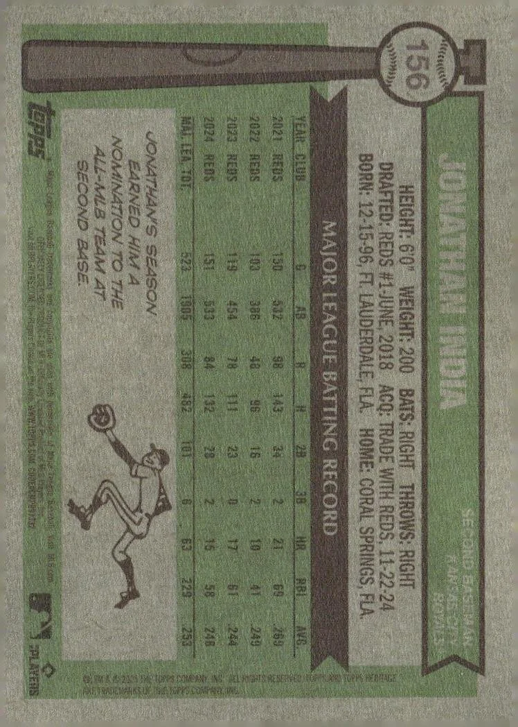 This is a nice example of a 2025 Topps Heritage #156 Jonathan India