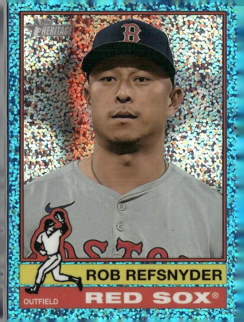 This is a nice example of a 2025 Topps Heritage #213 Rob Refsnyder Chrome Light Blue Sparkle Refractor