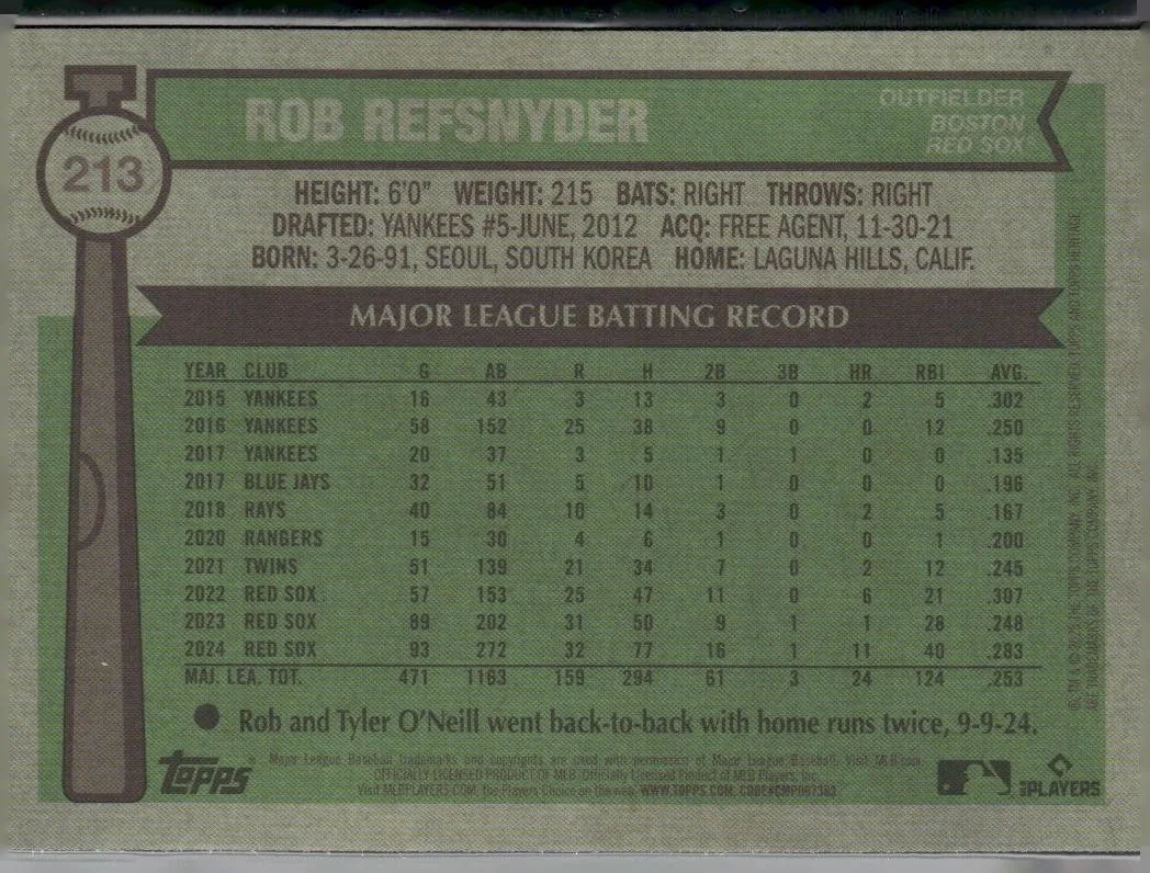 In 2025 Rob Refsnyder played for the Boston Red Sox.