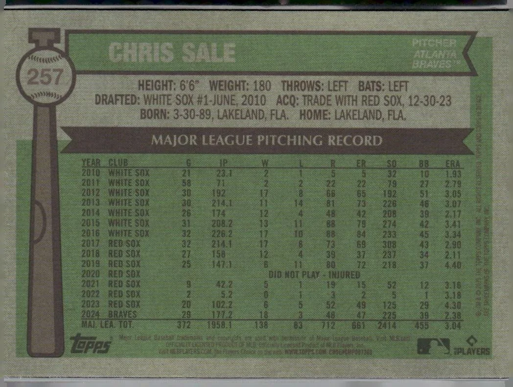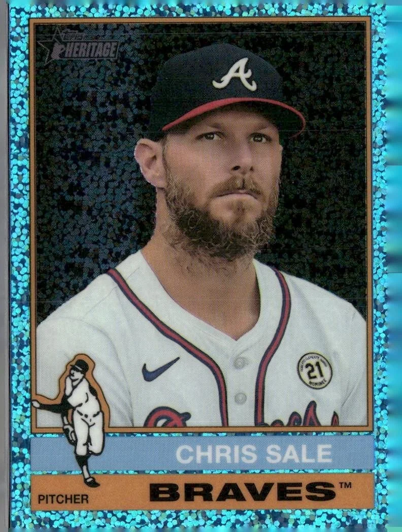 This is a nice example of a 2025 Topps Heritage #257 Chris Sale Chrome Aqua Sparkle Refractor