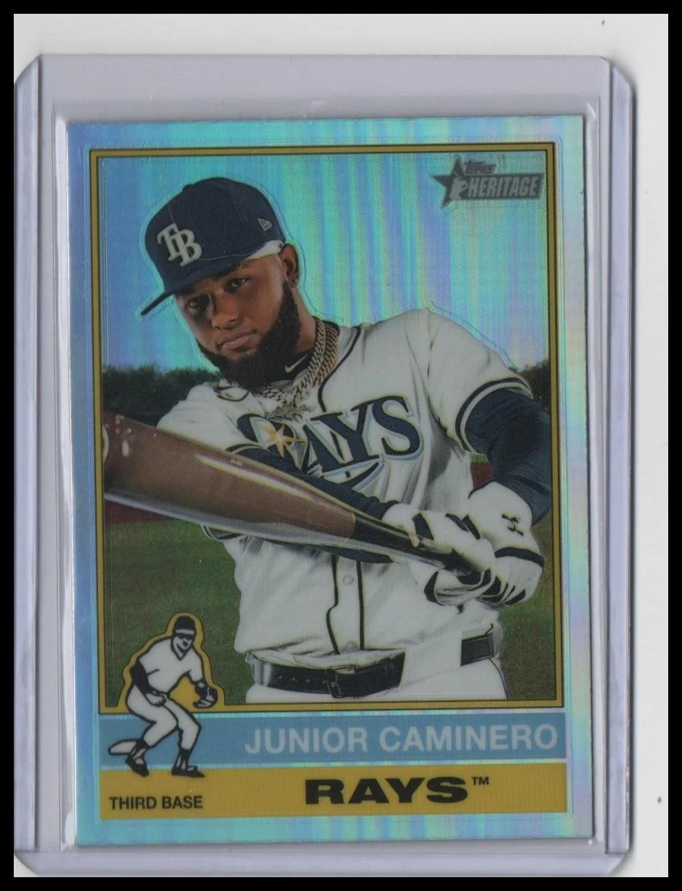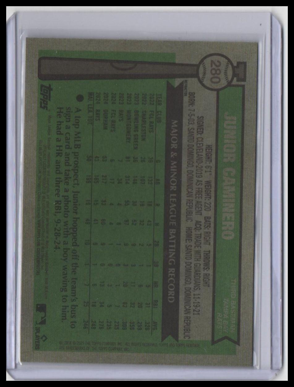 This is a nice example of a 2025 Topps Heritage #280 Junior Caminero Chrome