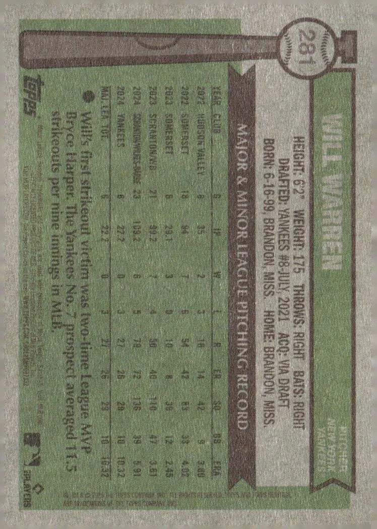 This is a nice example of a 2025 Topps Heritage #281 Will Warren