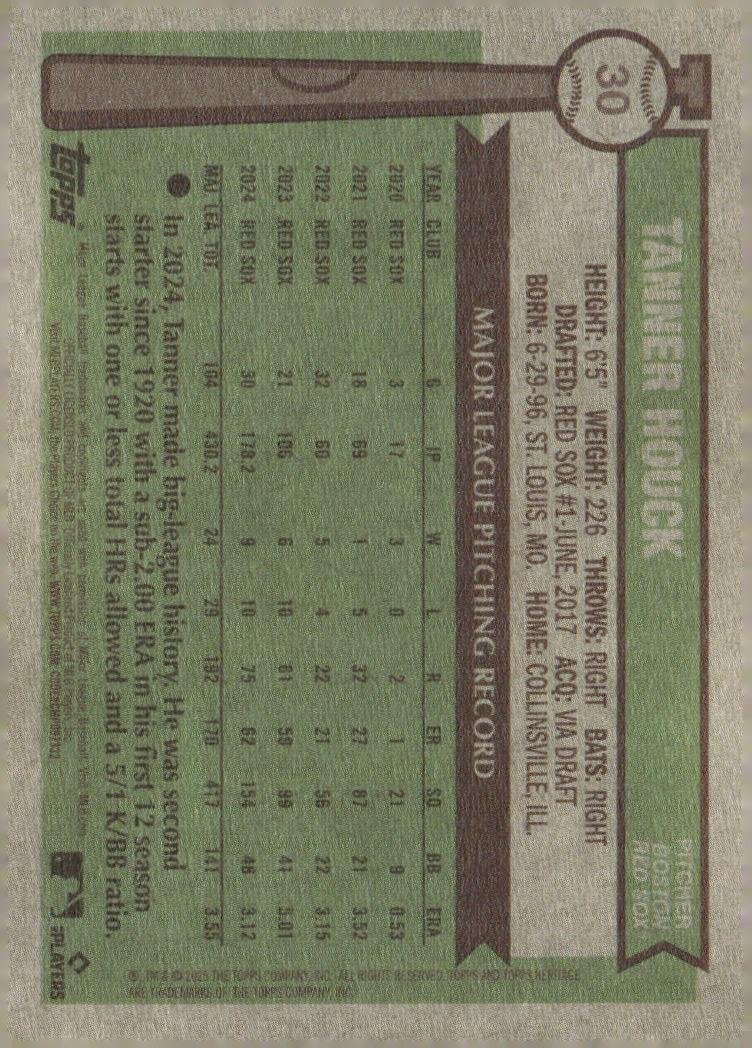This is a nice example of a 2025 Topps Heritage #30 Tanner Houck