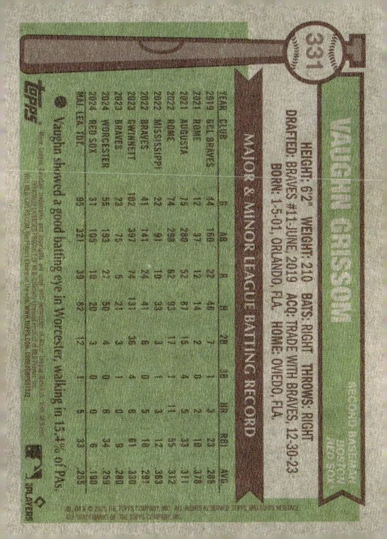 This is a nice example of a 2025 Topps Heritage #331 Vaughn Grissom