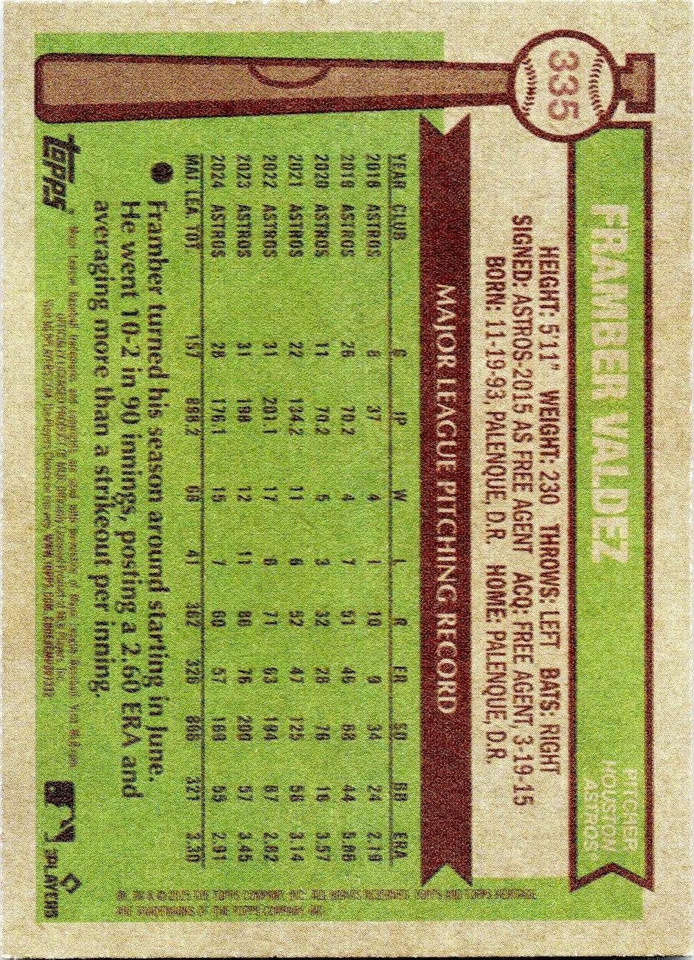 This is a nice example of a 2025 Topps Heritage #335 Framber Valdez