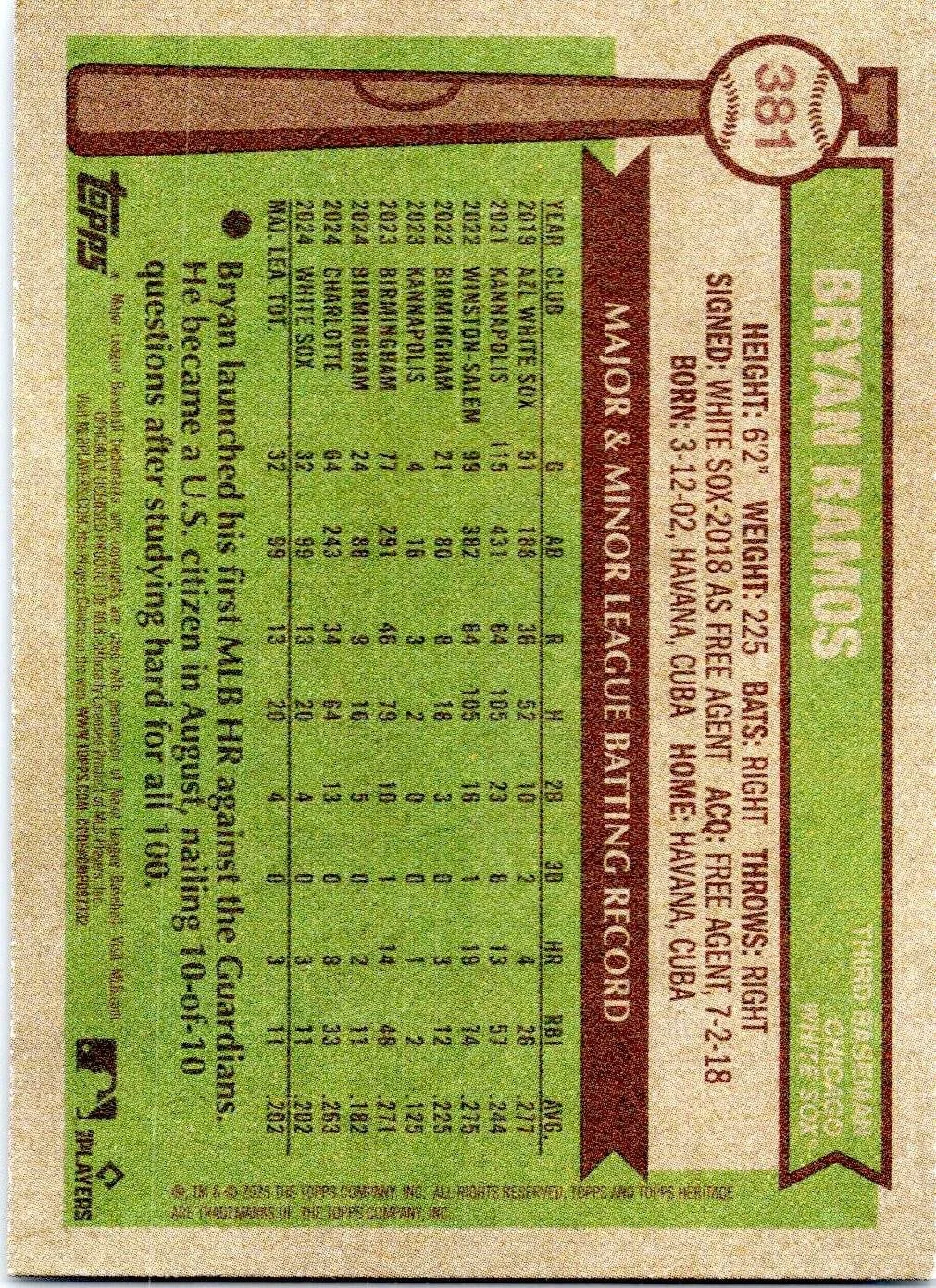 This is a nice example of a 2025 Topps Heritage #381 Bryan Ramos