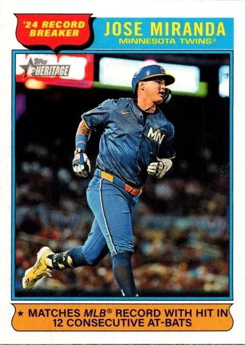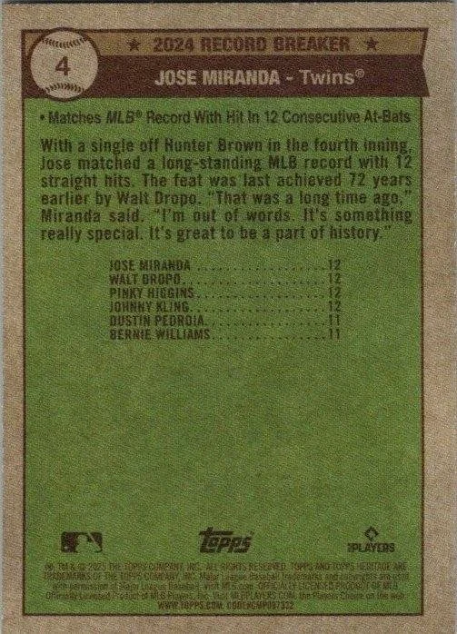 This is a nice example of a 2025 Topps Heritage #4 Jose Miranda