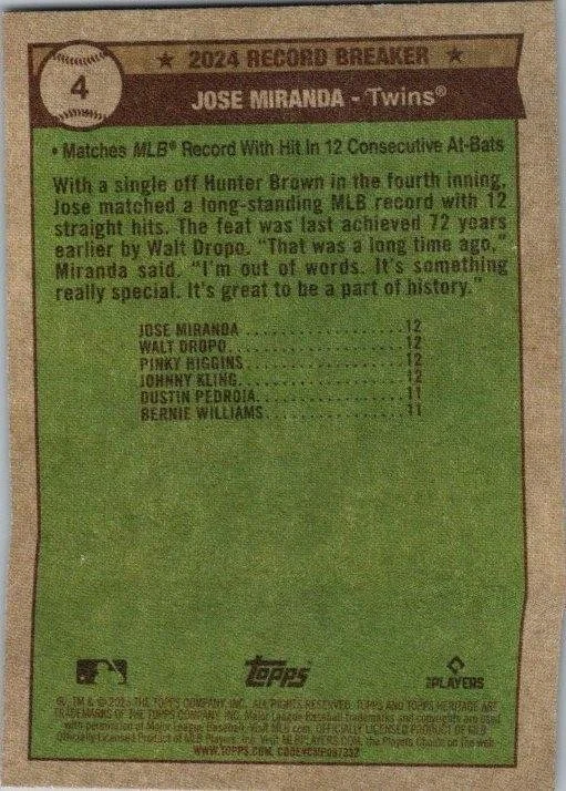 This is a nice example of a 2025 Topps Heritage #4 Jose Miranda