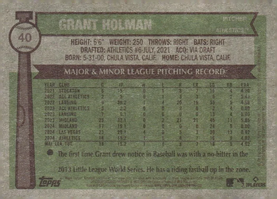 This is a nice example of a 2025 Topps Heritage #40 Grant Holman