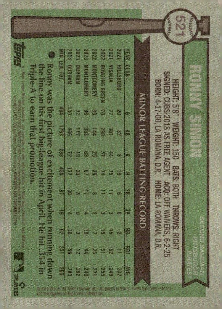 This is a nice example of a 2025 Topps Heritage #521 Ronny Simon