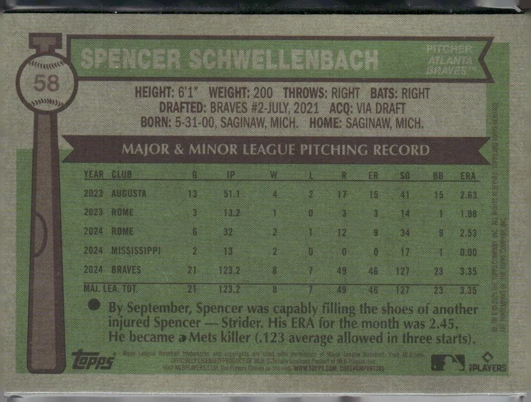 In 2025 Spencer Schwellenbach played for the Atlanta Braves.