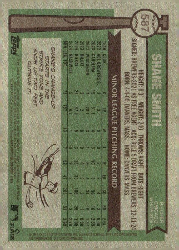 This is a nice example of a 2025 Topps Heritage #587 Shane Smith