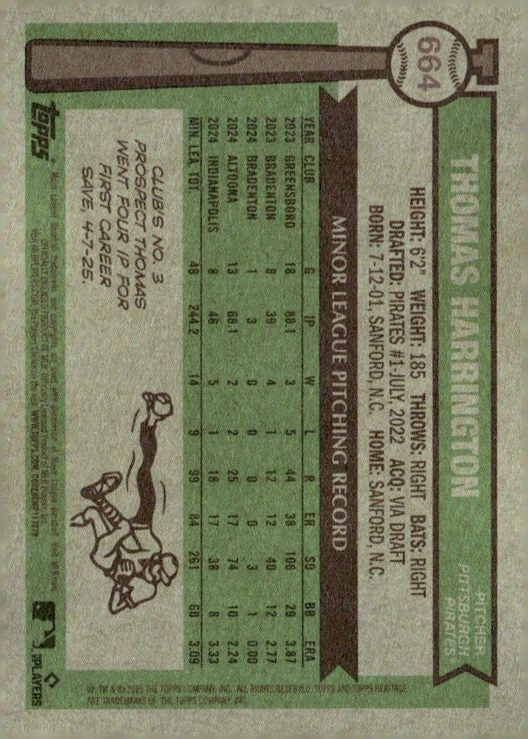 This is a nice example of a 2025 Topps Heritage #664 Thomas Harrington