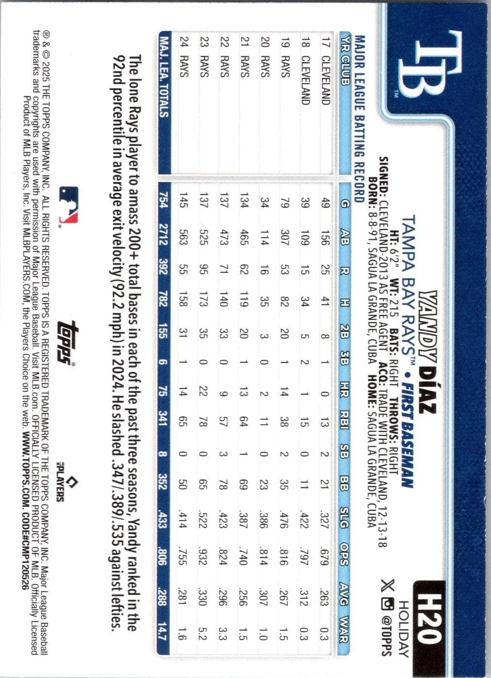 This is a nice example of a 2025 Topps Holiday #H20 Yandy Díaz