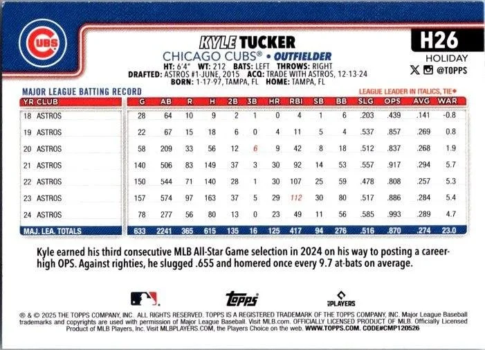 In 2025 Kyle Tucker played for the Chicago Cubs.