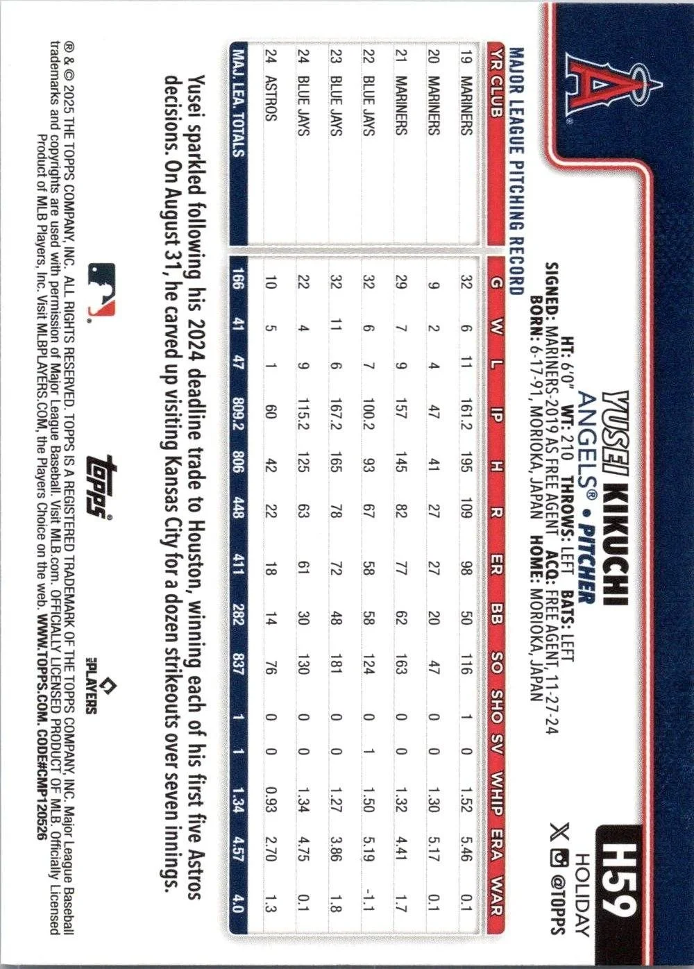 This is a nice example of a 2025 Topps Holiday #H59 Yusei Kikuchi