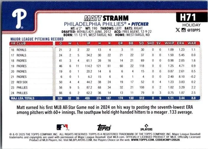 This is a nice example of a 2025 Topps Holiday #H71 Matt Strahm