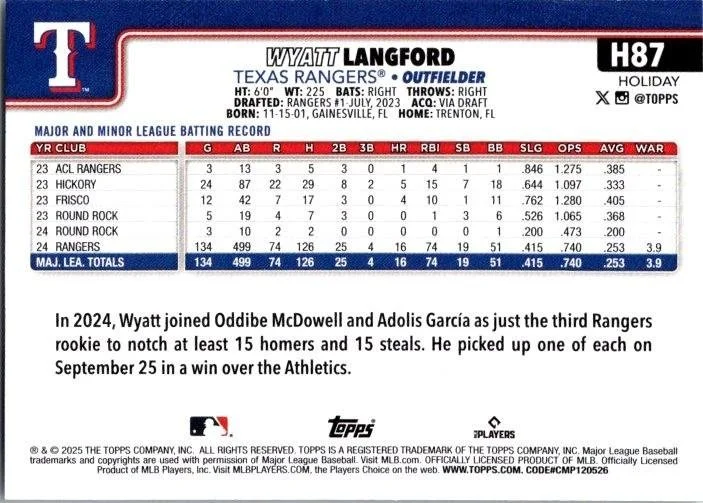 In 2025 Wyatt Langford played for the Texas Rangers.