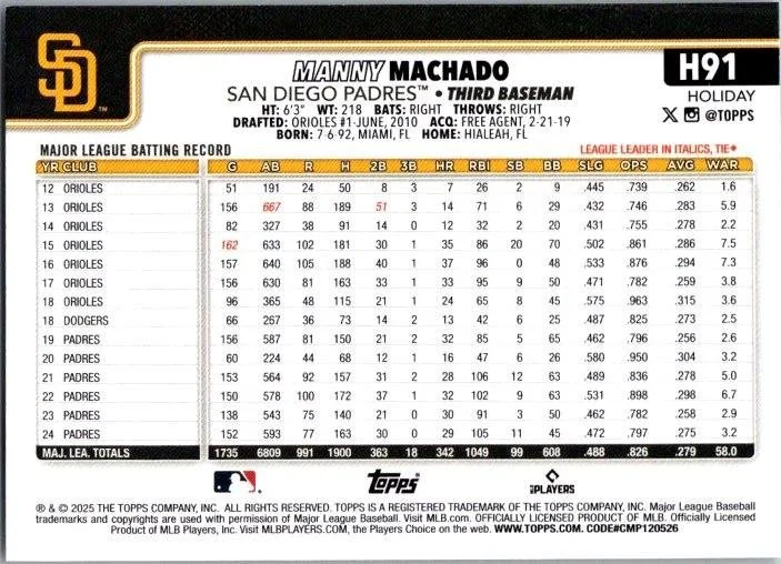 This is a nice example of a 2025 Topps Holiday #H91 Manny Machado