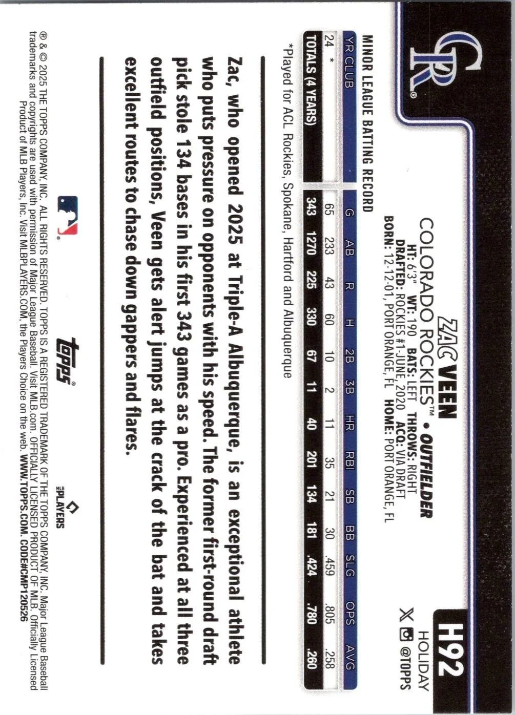 In 2025 Zac Veen played for the Colorado Rockies.