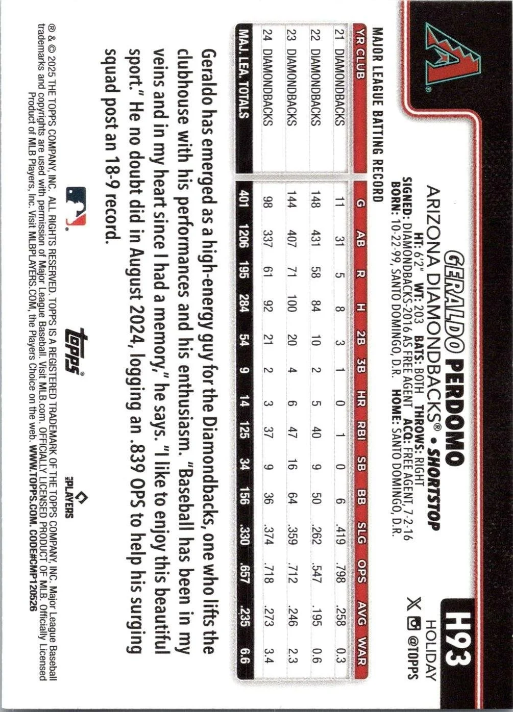 This is a nice example of a 2025 Topps Holiday #H93 Geraldo Perdomo