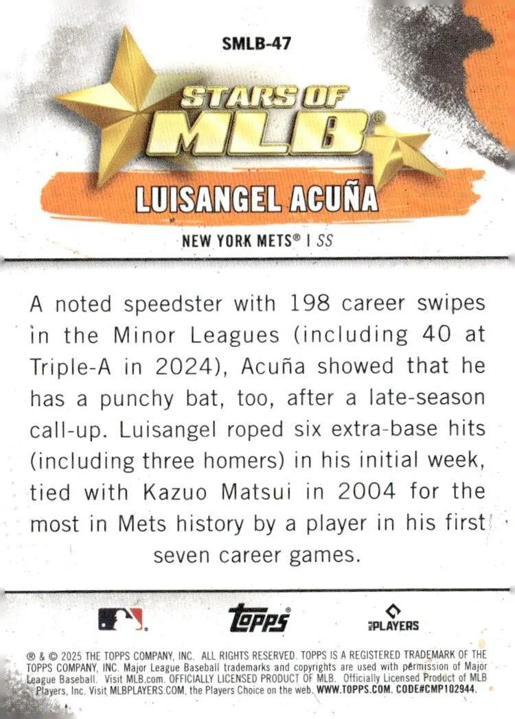This is a nice example of a 2025 Topps #SMLB-47 Luisangel Acuña Stars of MLB
