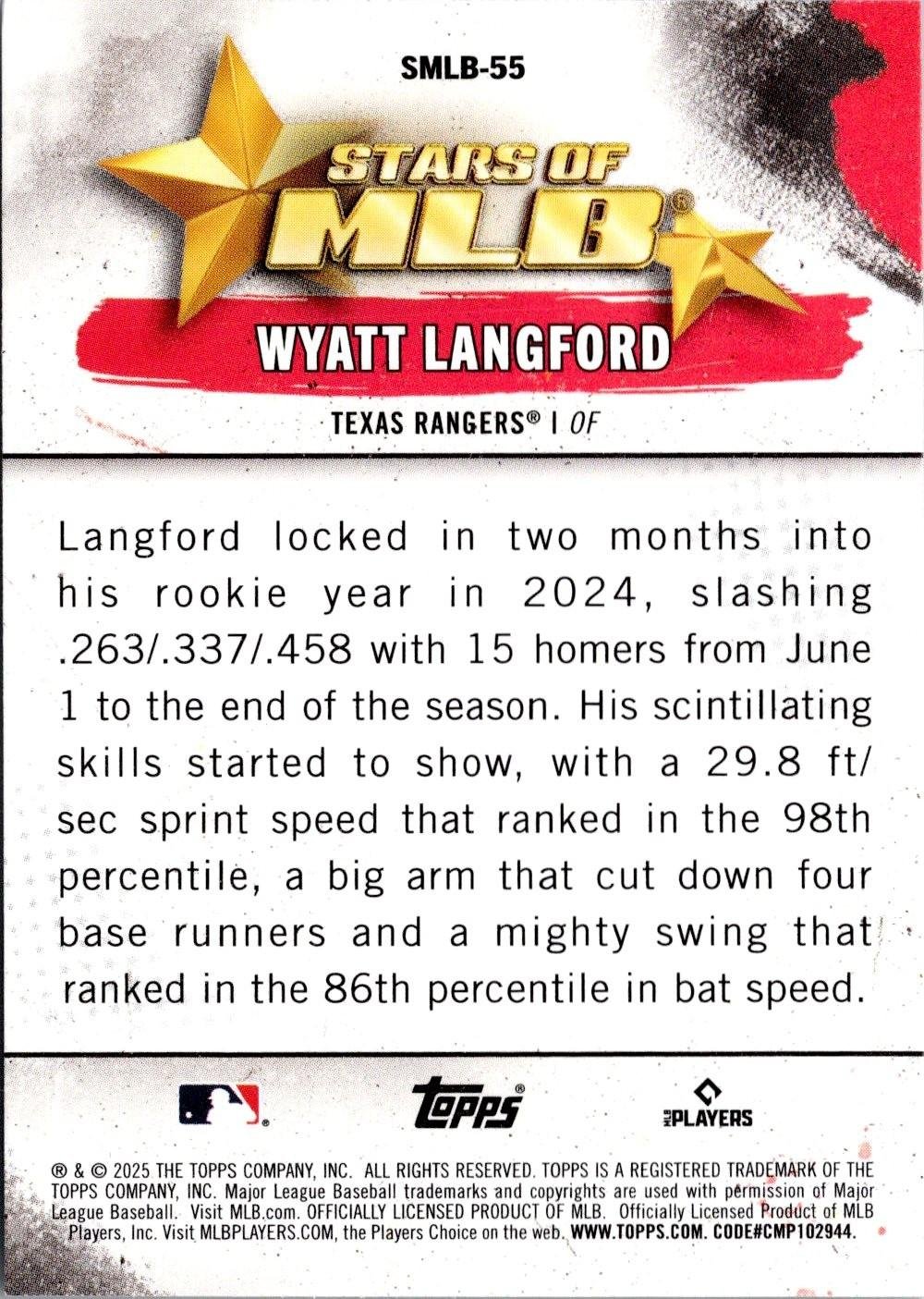 This is a nice example of a 2025 Topps #SMLB-55 Wyatt Langford Stars of MLB