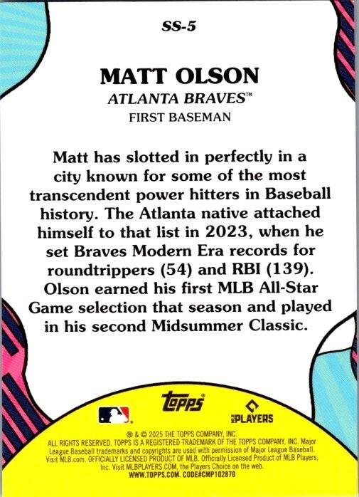 This is a nice example of a 2025 Topps #SS-5 Matt Olson Summer Superstars Pink