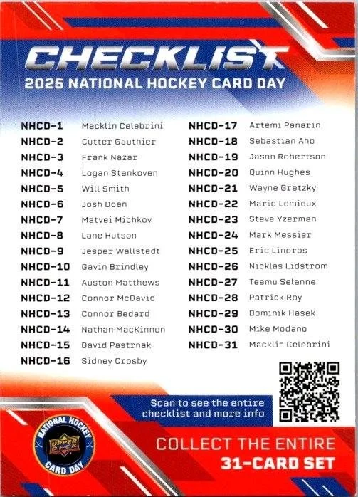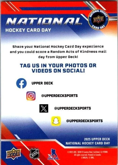This is a nice example of a 2025 Upper Deck National Hockey Card Day #NNO checklist 9-Card Sheets