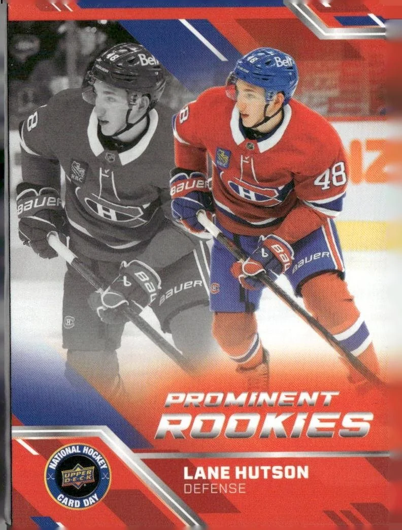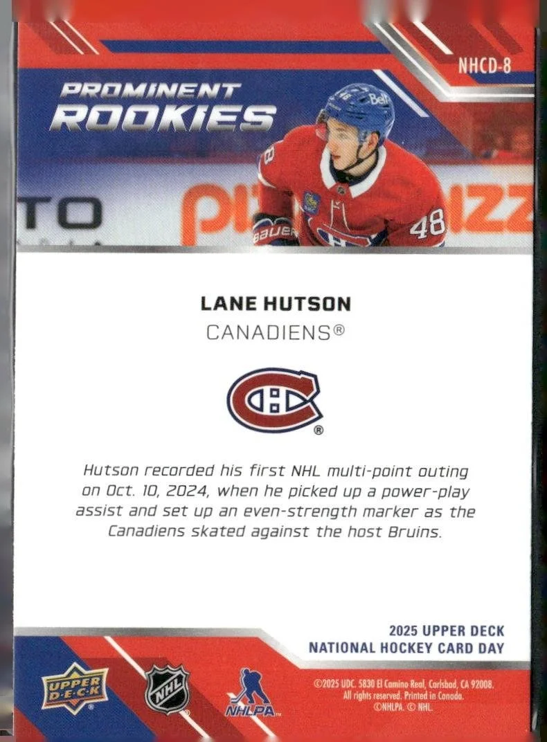 This is a nice example of a 2025 Upper Deck National Hockey Card Day #NHCD-8 Lane Hutson