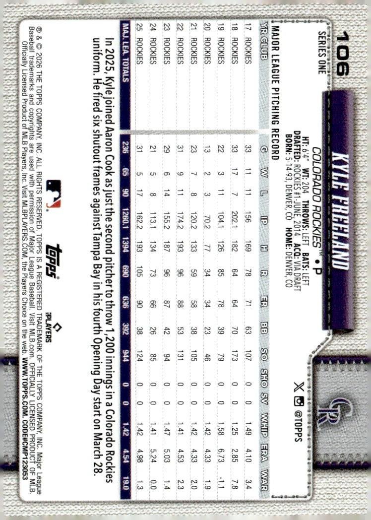 This is a nice example of a 2026 Topps #106 Kyle Freeland