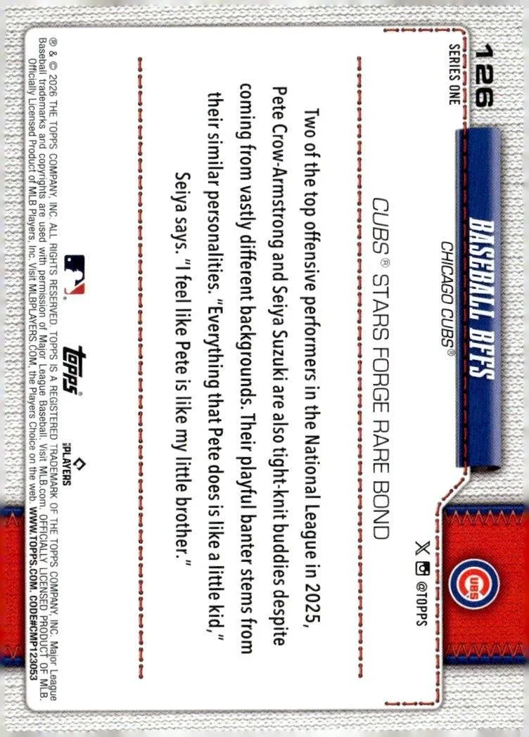 This is a nice example of a 2026 Topps #126 Baseball BFFS (Pete Crow-Armstrong / Seiya Suzuki)