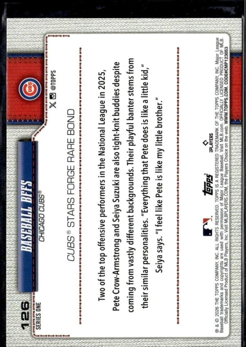In 2026 Baseball BFFS (Pete Crow-Armstrong / Seiya Suzuki) played for the Chicago Cubs.