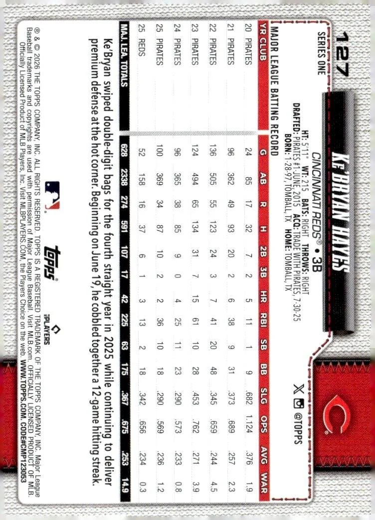This is a nice example of a 2026 Topps #127 Ke'Bryan Hayes