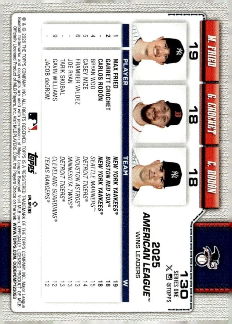 This is a nice example of a 2026 Topps #130 American League Leaders
