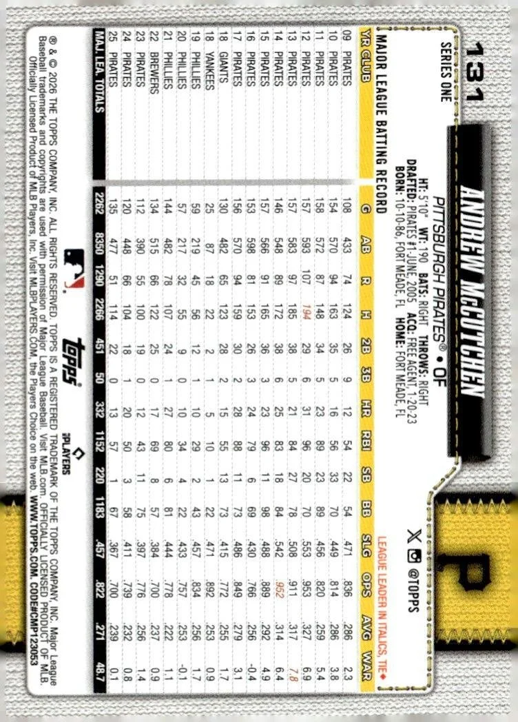 This is a nice example of a 2026 Topps #131 Andrew McCutchen