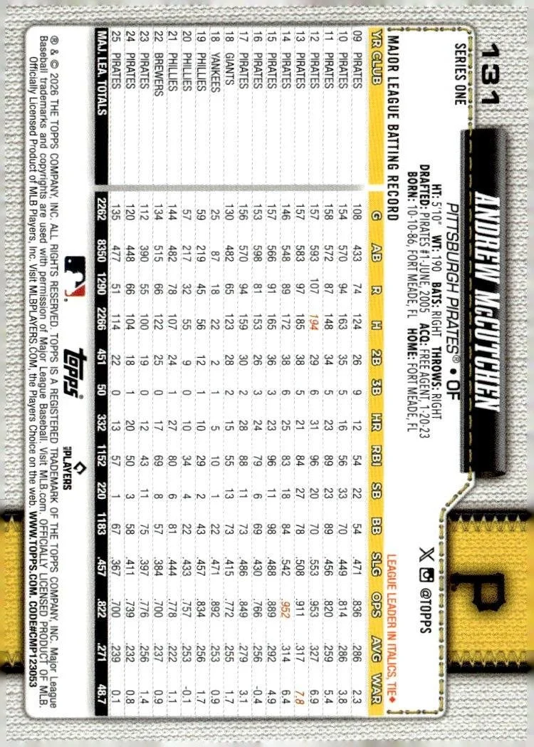 This is a nice example of a 2026 Topps #131 Andrew McCutchen