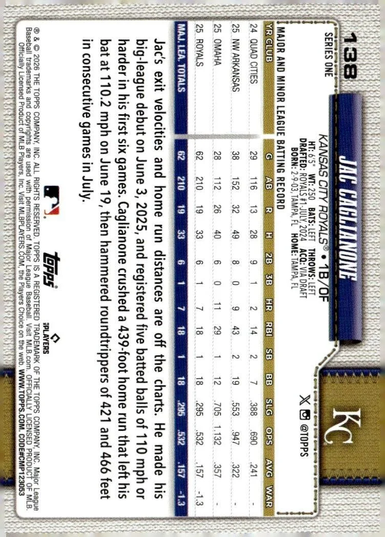 This is a nice example of a 2026 Topps #138 Jac Caglianone