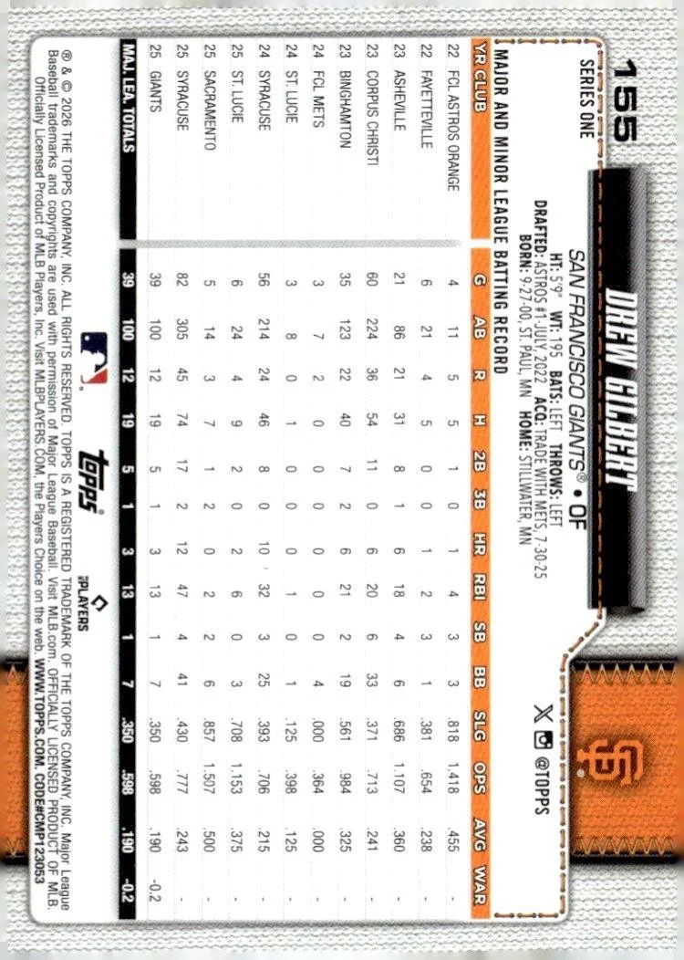 This is a nice example of a 2026 Topps #155 Drew Gilbert