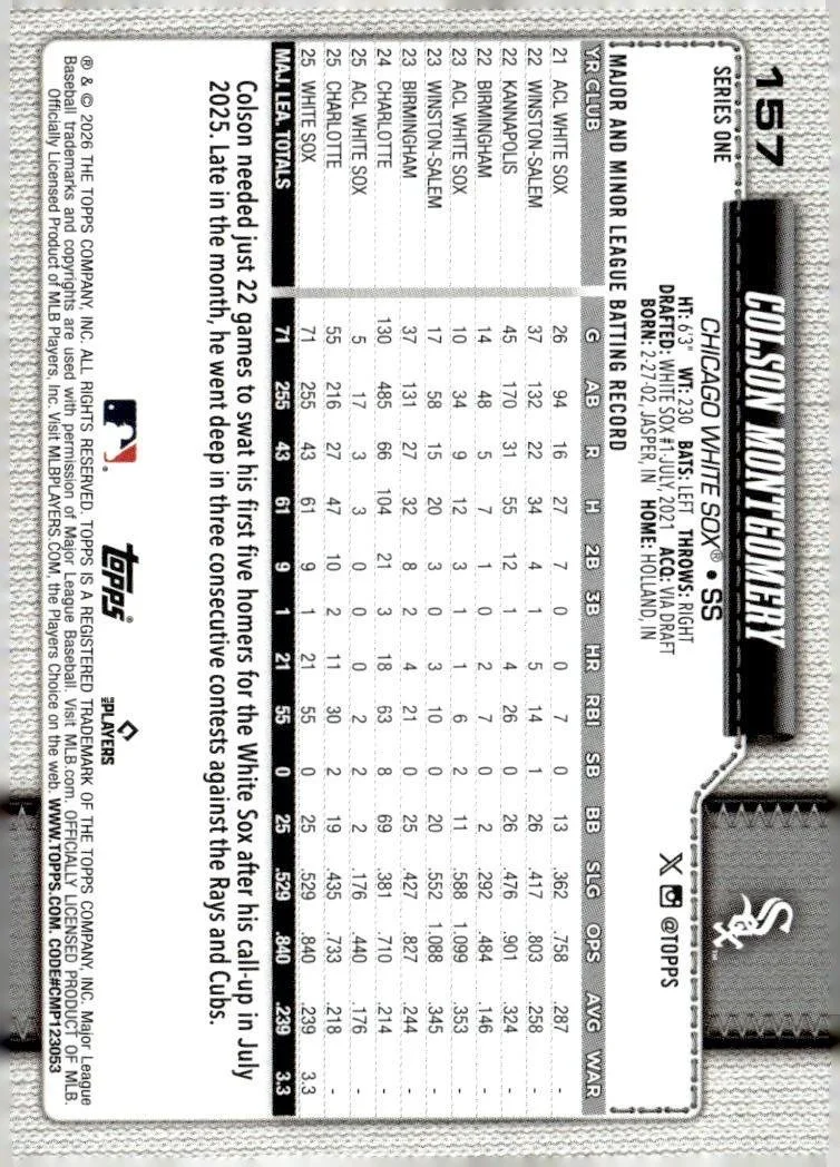 This is a nice example of a 2026 Topps #157 Colson Montgomery