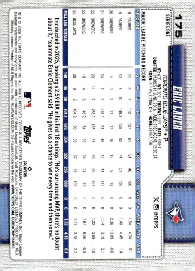 This is a nice example of a 2026 Topps #175 Eric Lauer