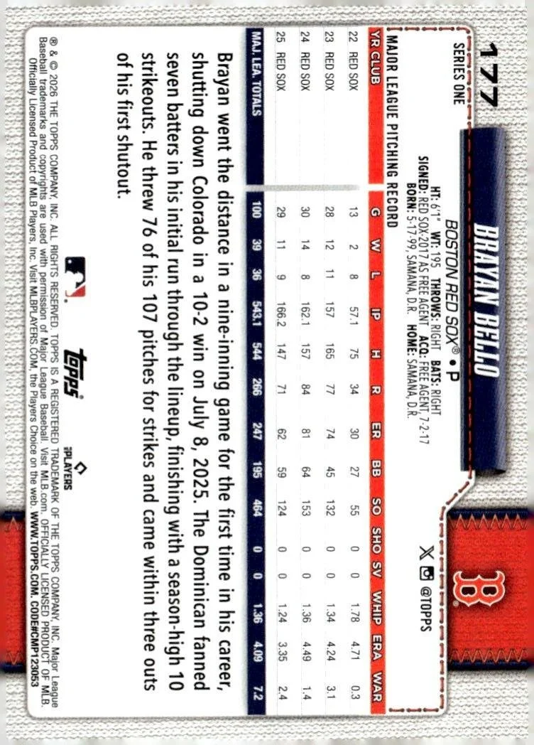 This is a nice example of a 2026 Topps #177 Brayan Bello