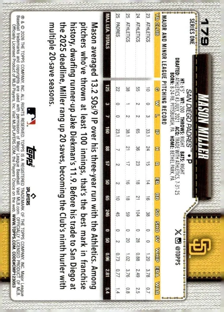 This is a nice example of a 2026 Topps #179 Mason Miller
