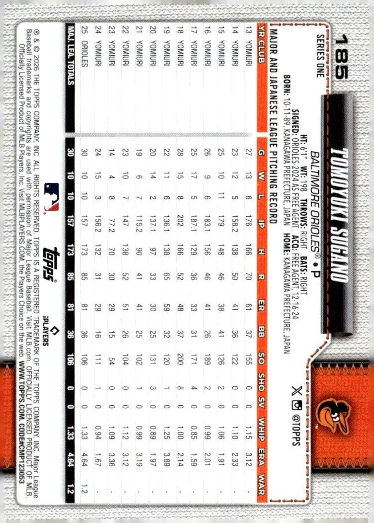 2026 Topps #185 Tomoyuki Sugano