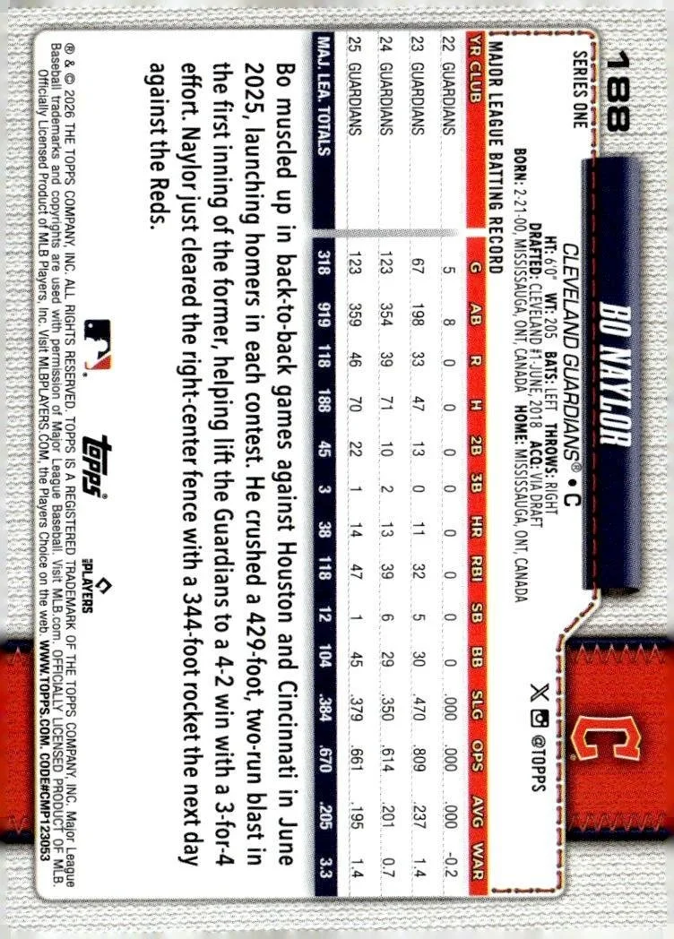 2026 Topps #188 Bo Naylor