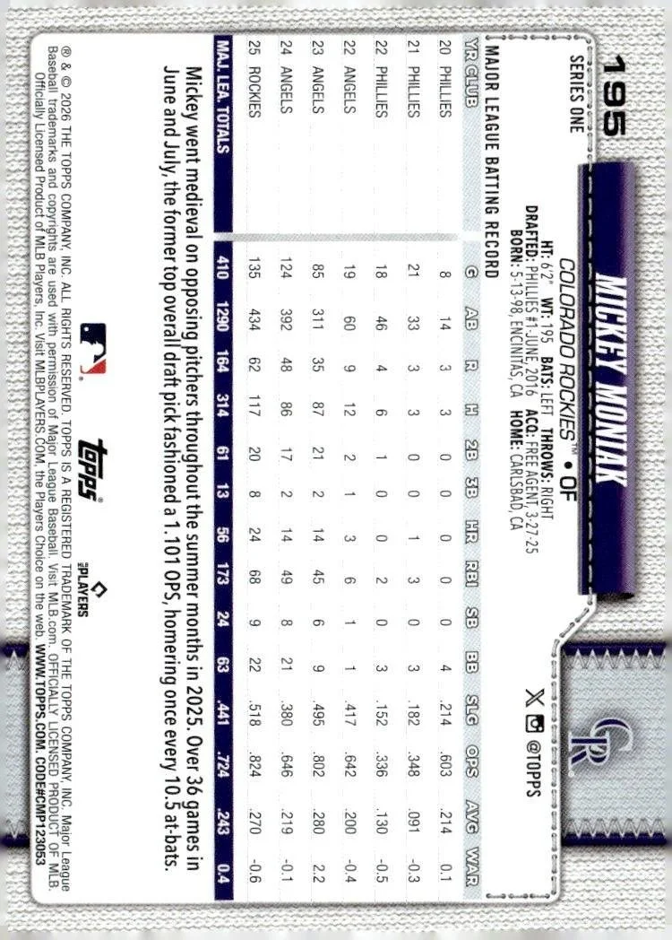This is a nice example of a 2026 Topps #195 Mickey Moniak