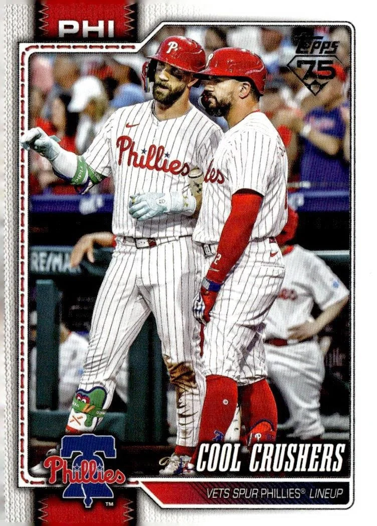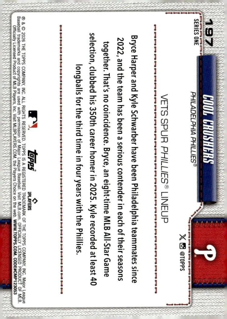 This is a nice example of a 2026 Topps #197 Cool Crushers (Bryce Harper / Kyle Schwarber)